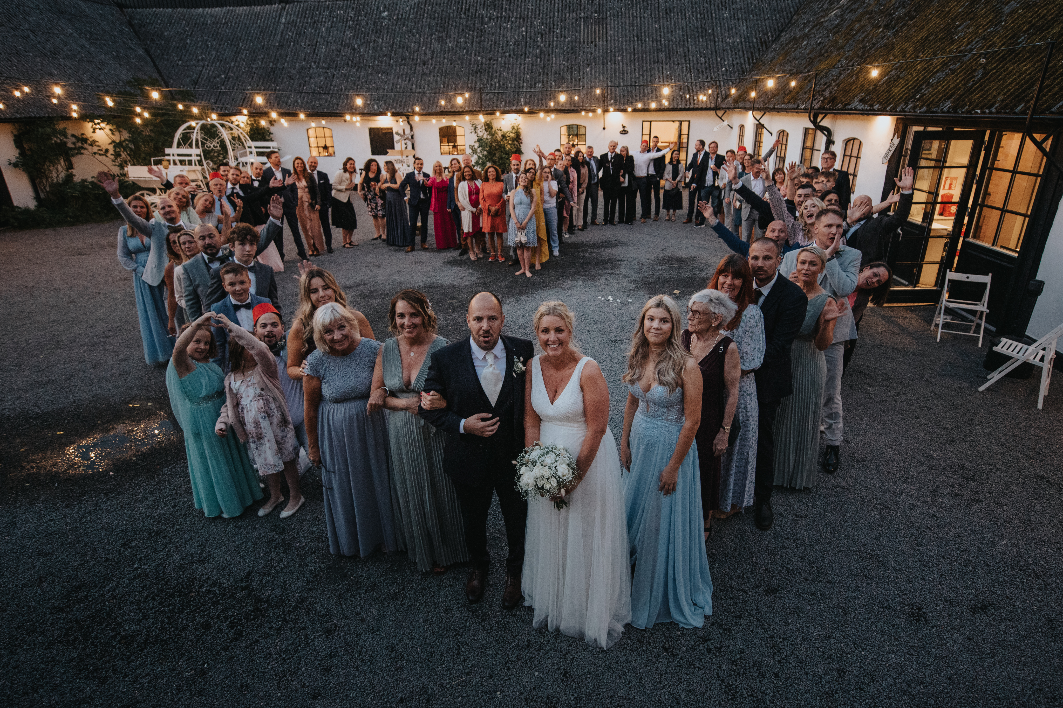 Stallgården har allt ni behöver för att göra er bröllopsdag fulländad och minnesvärd. Den mysiga trädgården med den vackra bröllopsbågen är perfekt för en utomhusvigsel under blå himmel och grönskande omgivningar. Alla samlas för brudens skål i den underbara innergården. Gården rymmer också ett stort boningshus med fyra dubbelrum, vilket gör att ni och era närmaste kan bo bekvämt under hela bröllopshelgen. Den enorma ladan, med plats för upp till 150 gäster, är perfekt för både middag och fest. Här har vi skapat en rustik men elegant miljö med 10 meter upp i nock och romantisk ljussättning som ger ett oförglömligt sken. De stora portarna kan öppnas upp för att skapa en luftig känsla och låta doften från fälten sprida sig, vilket ger en unik atmosfär för er stora dag.