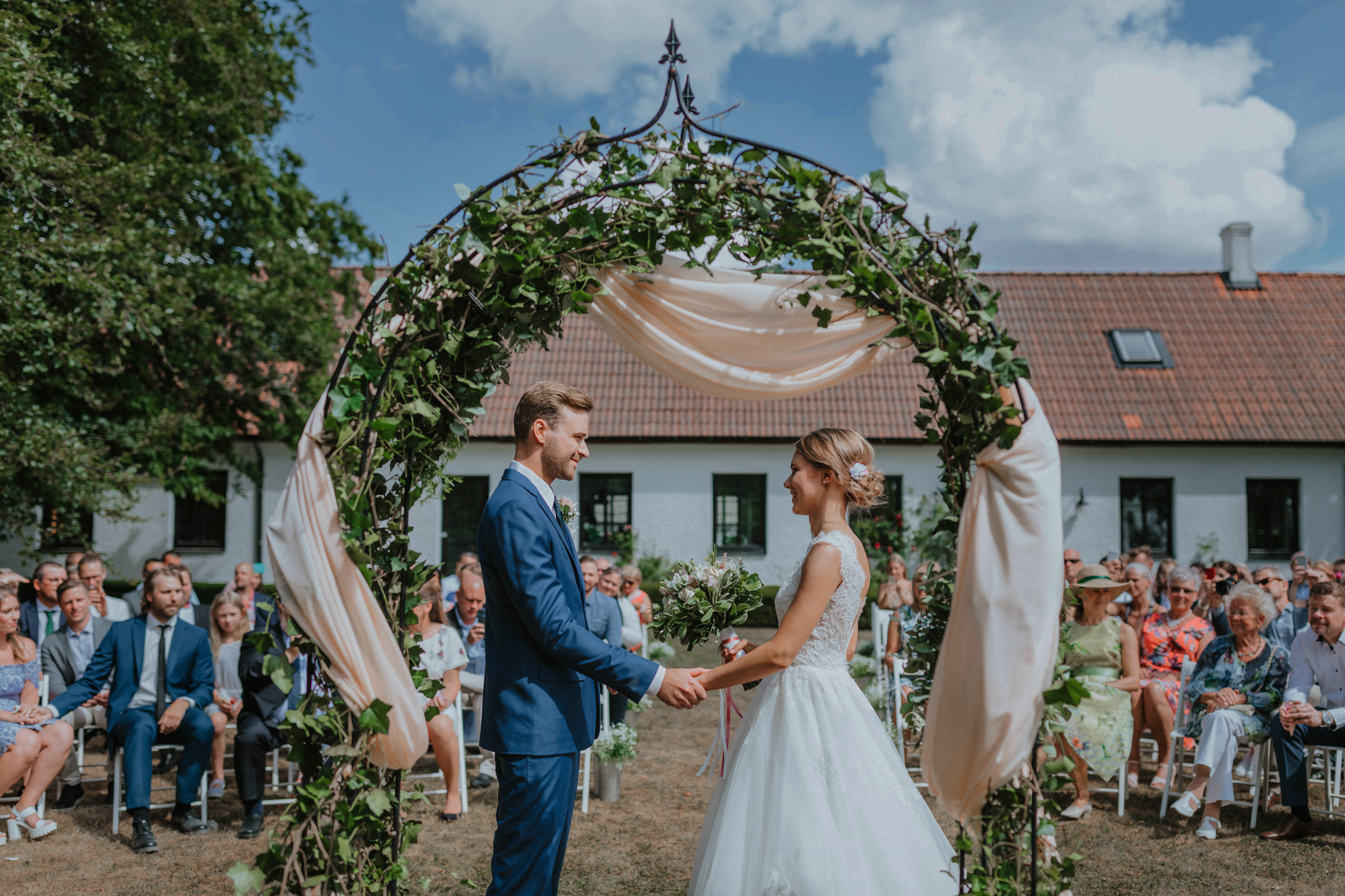Drömmer ni om att säga ”ja” under bar himmel? Stallgården erbjuder flera vackra platser för er vigsel utomhus. Välj den lummiga trädgården, omringad av blomstrande buskar, eller i den blomsterprydda Pergolan som är omgiven av de skånska sädesfälten. Ni kan även hålla vigseln inomhus i stallet, som ger en vacker och intim känsla. Stallgården skapar nya minnen och gör ert bröllop oförglömligt.