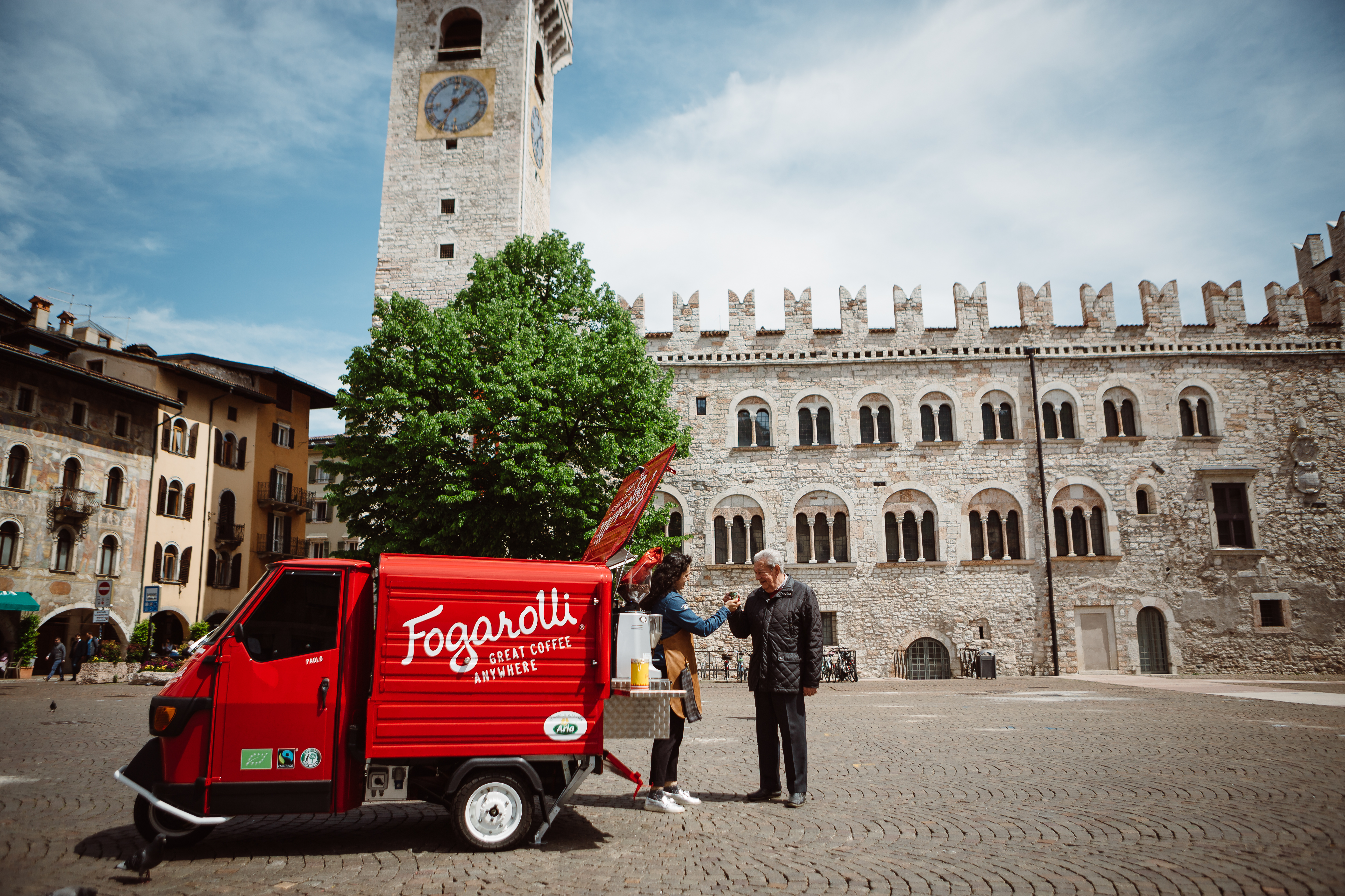 Med Fogarollis italienska röda kaffemoped får ni en kaffeupplevelse i toppklass. Vårt eget premiumkaffe serveras av en professionell barista som med erfarenhet och passion skapar en varm och glad stämning, fylld av magisk kaffedoft och en charmig italiensk känsla.